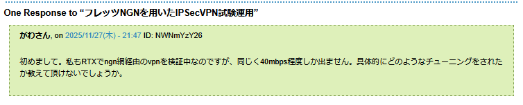 4年前に投稿したNGN経由のVPN構築について、先日こんなコメントが来ていた。