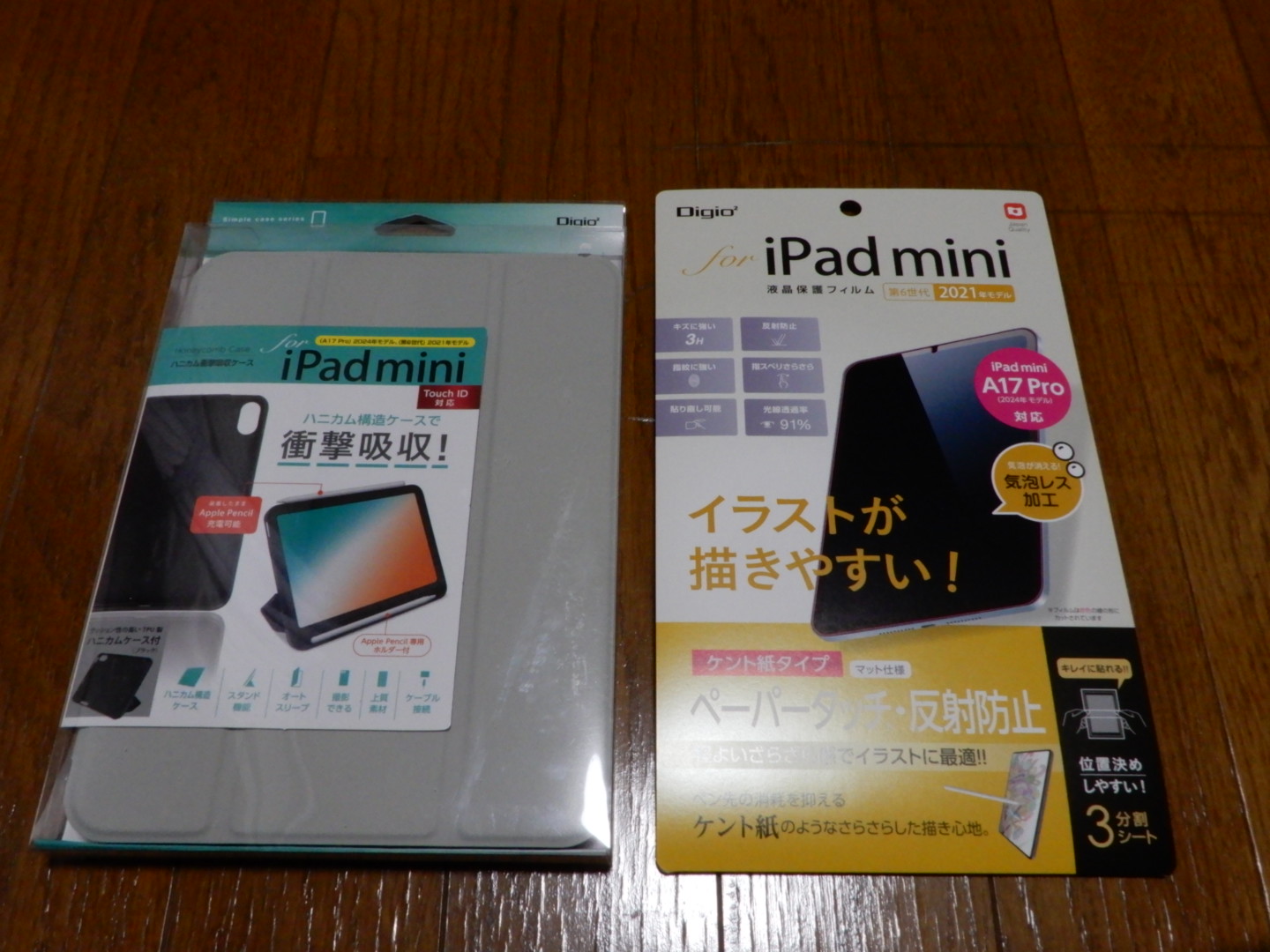 ケースは頑丈そうで軽い物、フィルムは紙質に近づけたかったのでイラスト用を購入。