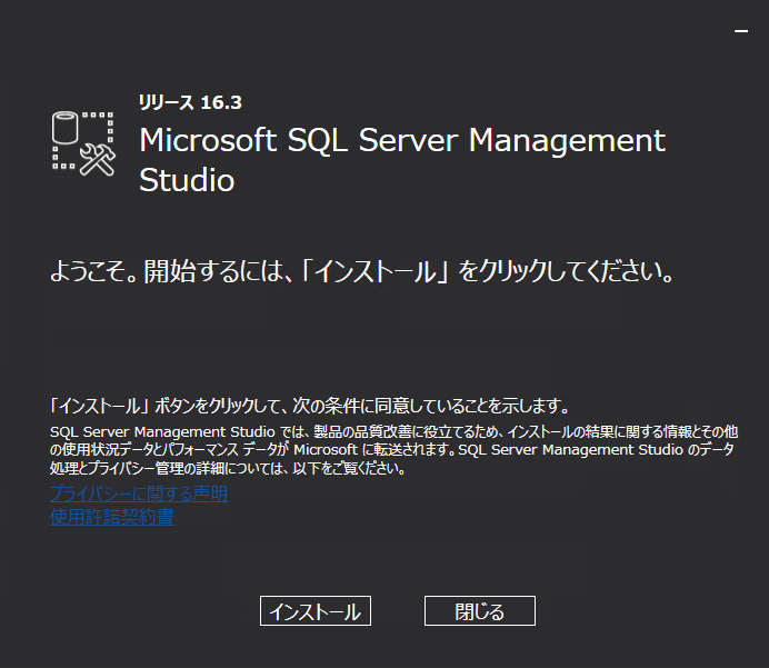 SQL ServerをGUI操作する為に、SQL Server Management Studio (SSMS)を追加インストールする。