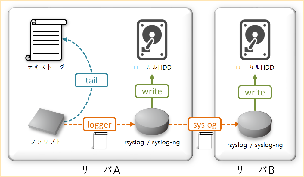 取得したログをリモートサーバにsyslog転送するには、rsyslog・syslog-ngの設定変更も必要になります。